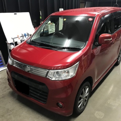 スズキワゴンRのボンネットにできた凹みをデントリペアで修理しました。