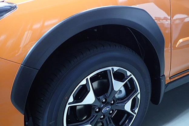 スバル インプレッサXVのタイヤハウス周りの未塗装樹脂パーツにコーティングを施工しました。