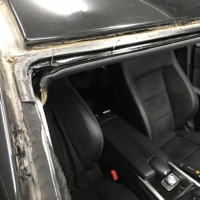 理由は、ガラス上部の接着不良による雨漏りのため。